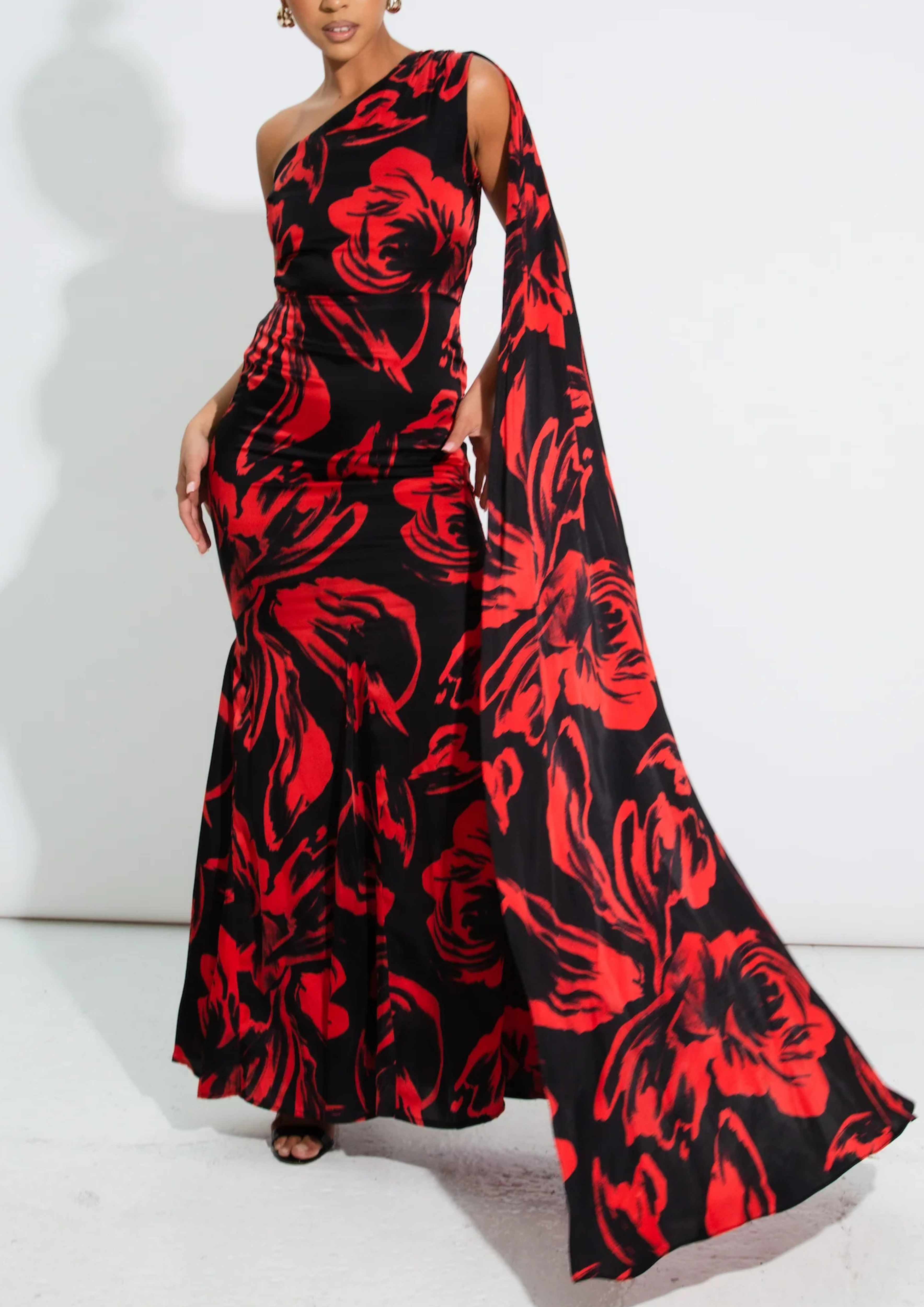 Adanna is a show stopper in so many ways, it features an open back and floor sweeping dramatic cape in our hot new Ata rodo print. This print was inspired by the fiery chilli pepper used in most Nigerian delicacies!