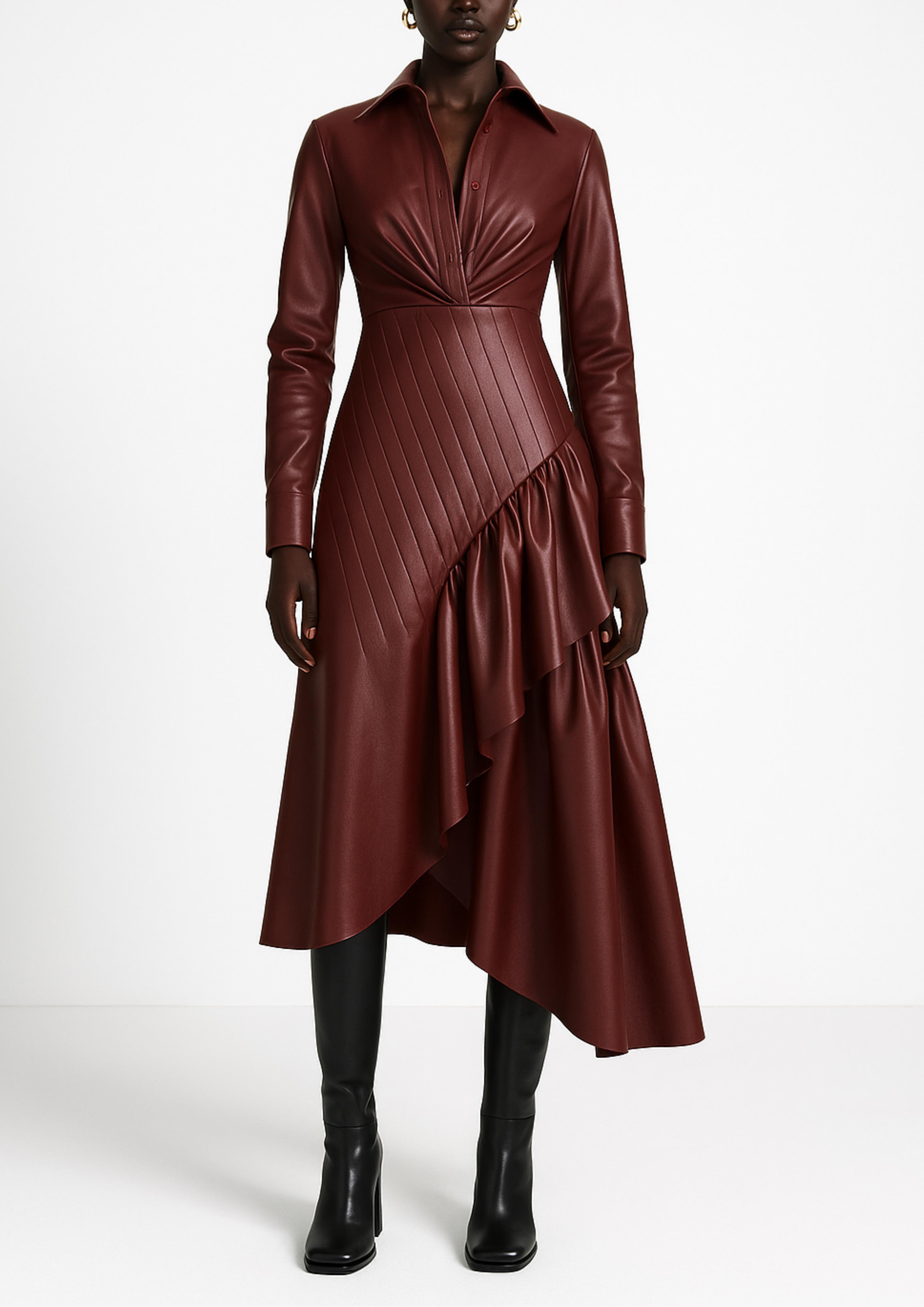 Introducing Rolake, our first leather dress. The statement drama of a Yaura piece but in vegan leather? EPIC!