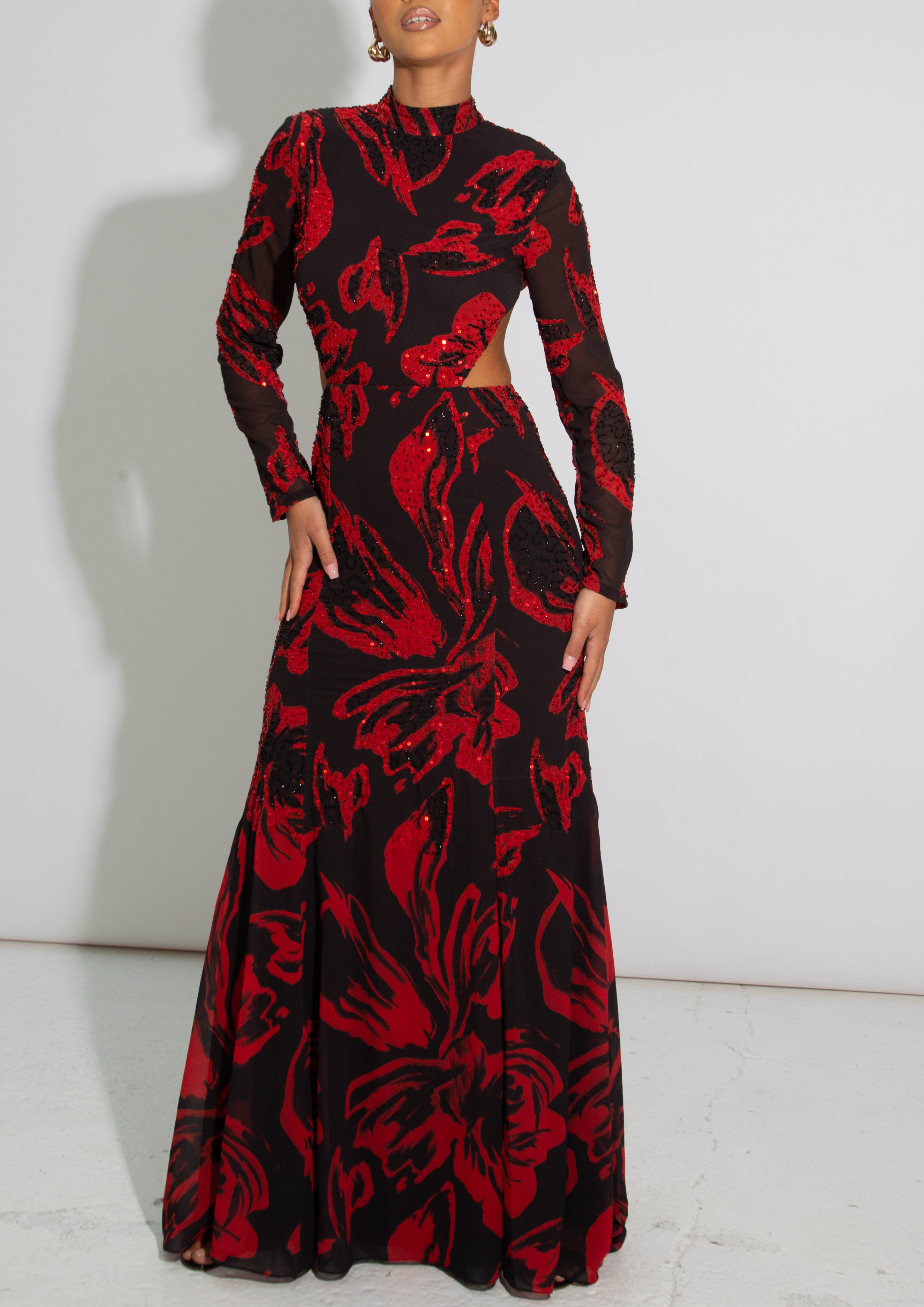 Tomisin is a stunning piece of art with delicate hand embellished details and an open back in our hot new Ata rodo print