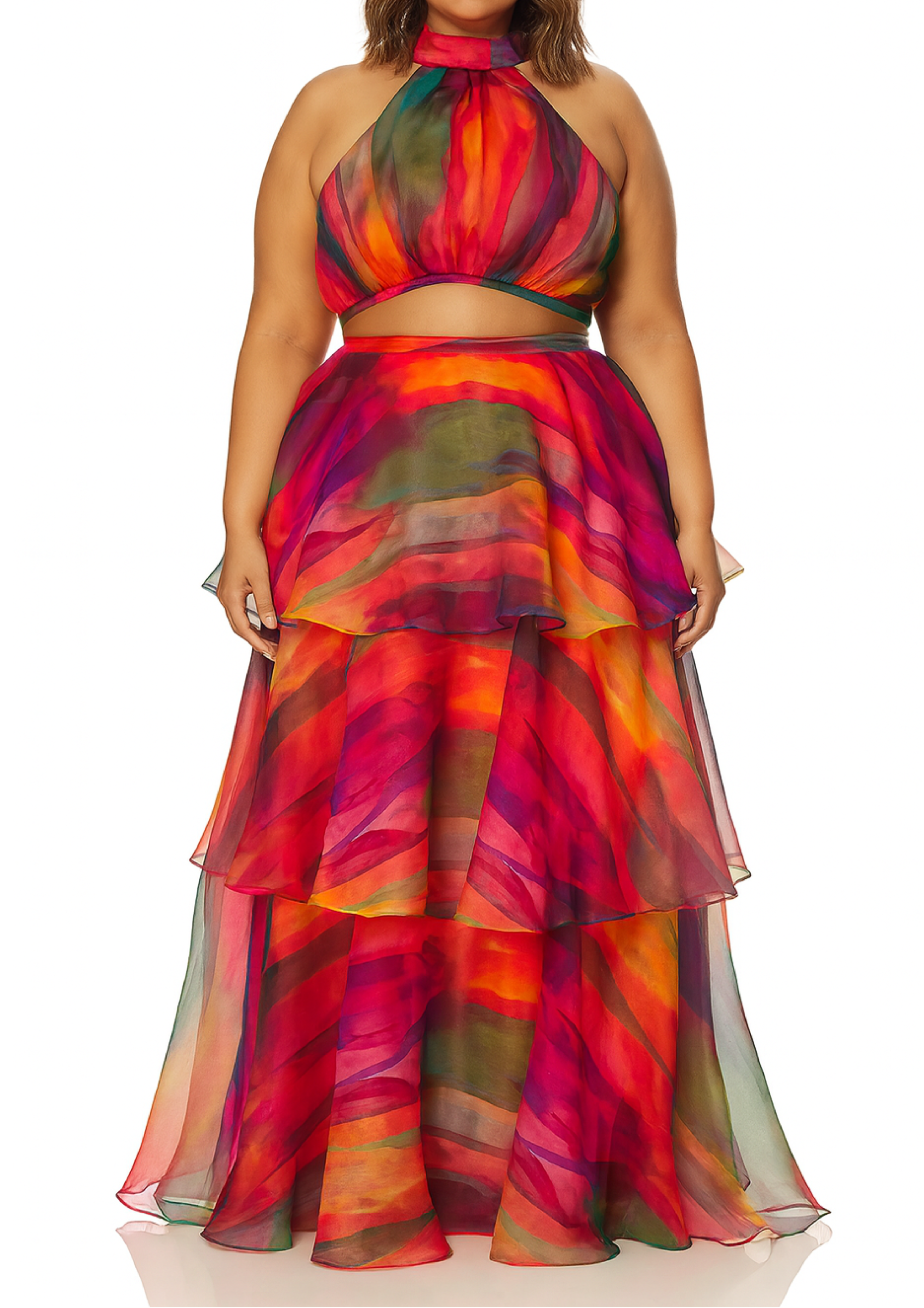 Get ready to twirl in the Aquarelle Pattern Faari Skirt! This ankle-length skirt has lovely tiered layers that are perfect for making a statement. The eye-catching aquarelle print provides a splash of colour and individuality to any ensemble.