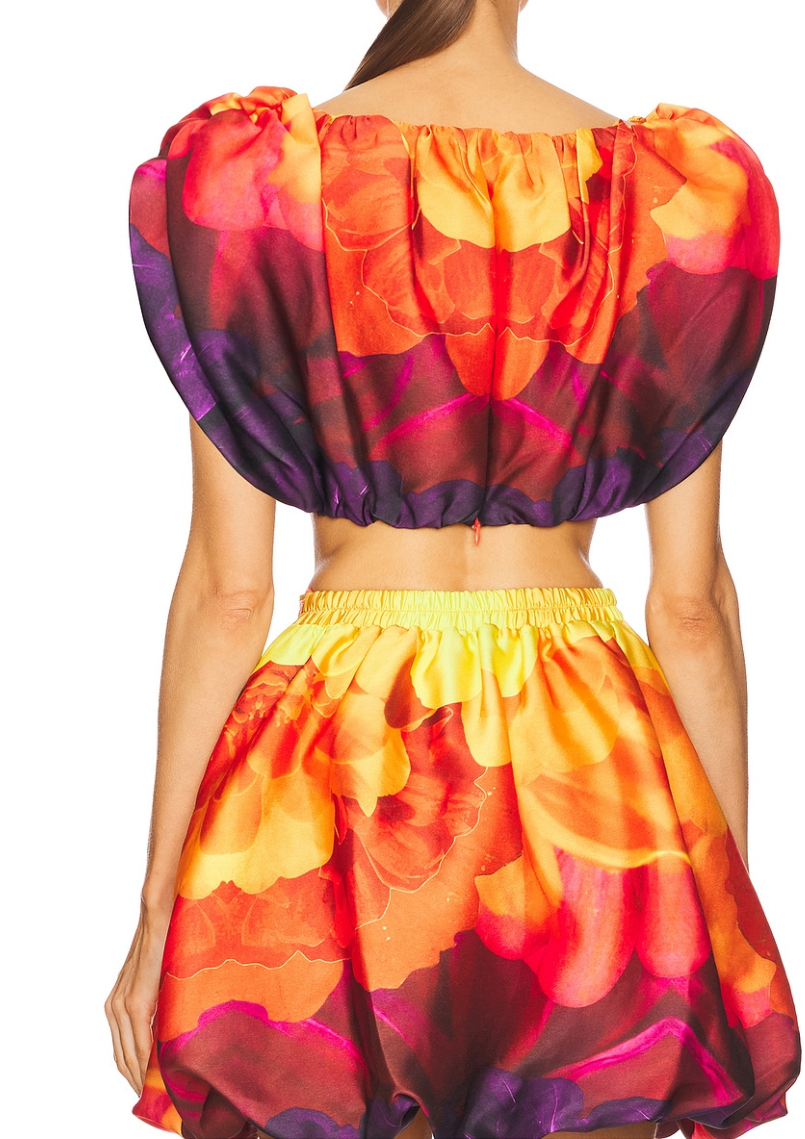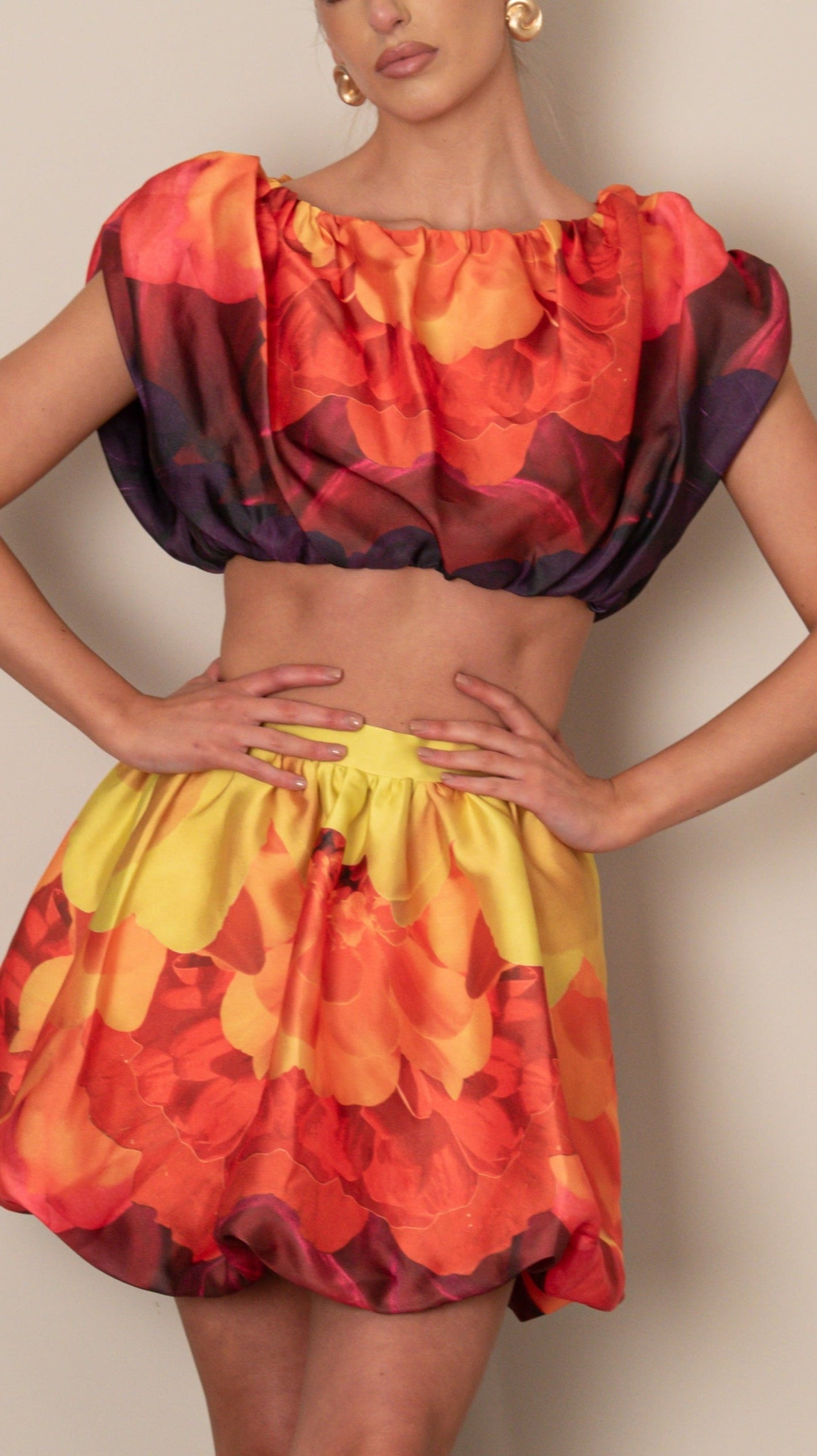 Made to mimic beautiful round petals, we're crowning Monife as the prettiest little bubble top. She's been designed with soft cowl sleeves, a simple crew neck and made in the stunning 'Petal Print'.