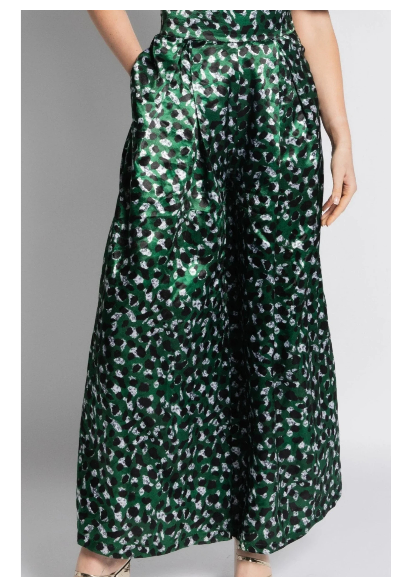 Our flattering wide leg pants, Wunmi, have been made in our new green starlight print.
